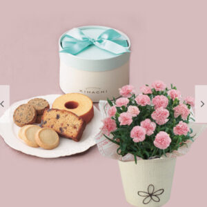 4:パティスリー キハチ アソートBOXとカーネーション5号鉢(さくらもなか)【母の日】